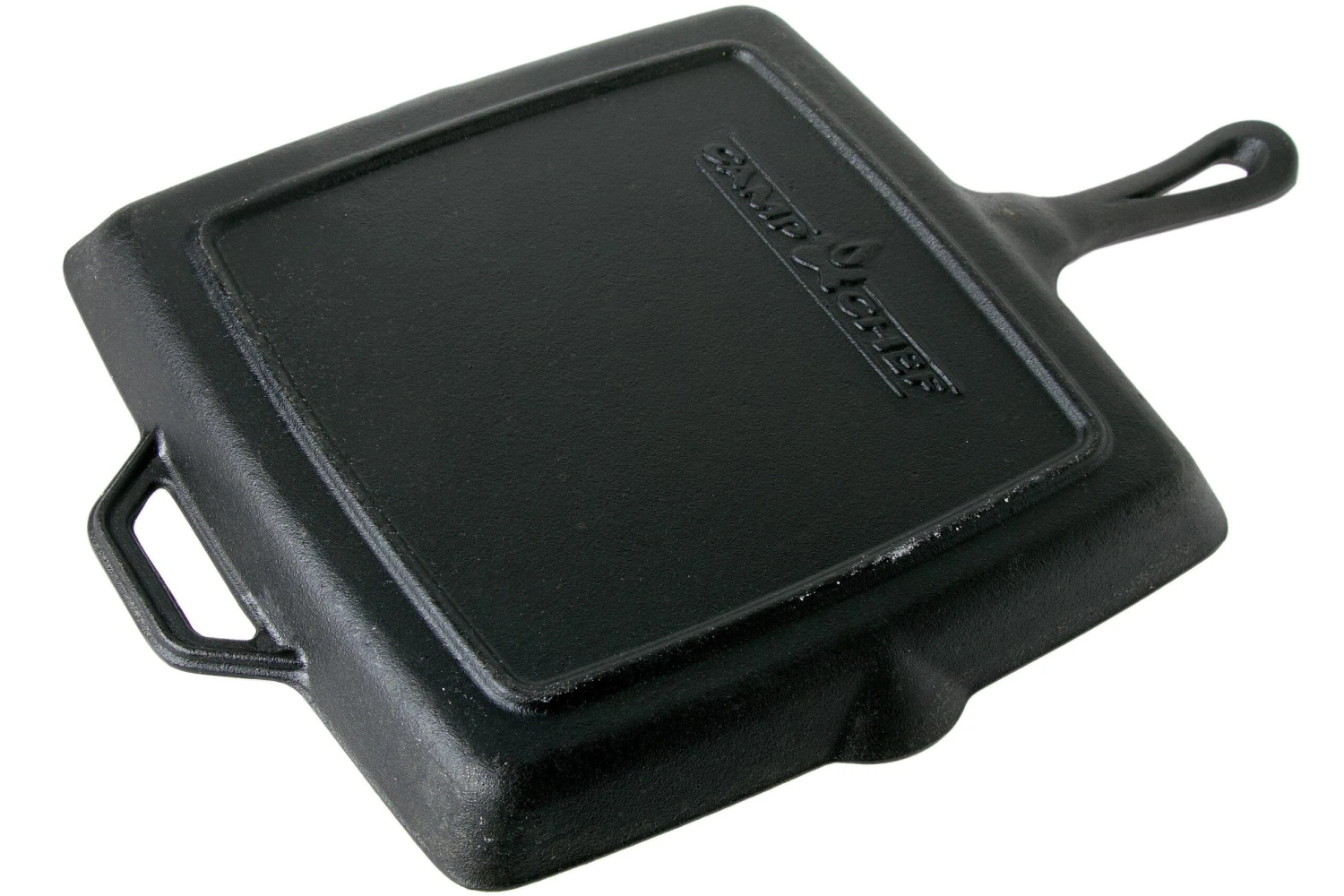 Le gril Camp Chef 11″ Square Skillet With Ribs est en fonte, c’est un champion pour faire griller de la viande ou des légumes. Les rainures vont aider à évacuer les graisses de la viandes et griller vos plats à la perfection. On utilise ce skillet sur une plaque de cuisson mais aussi dans le four ou encore directement sur le feu de camp. Cet ustensile est doté d’une poignée confortable et d’une poignée supplémentaire pratique. La manipulation est donc relativement facile.
