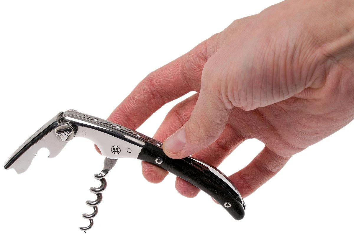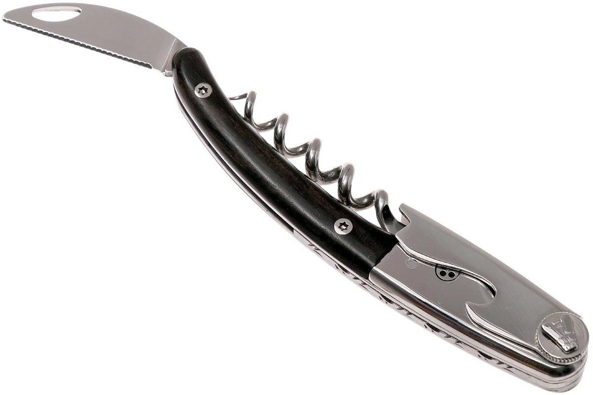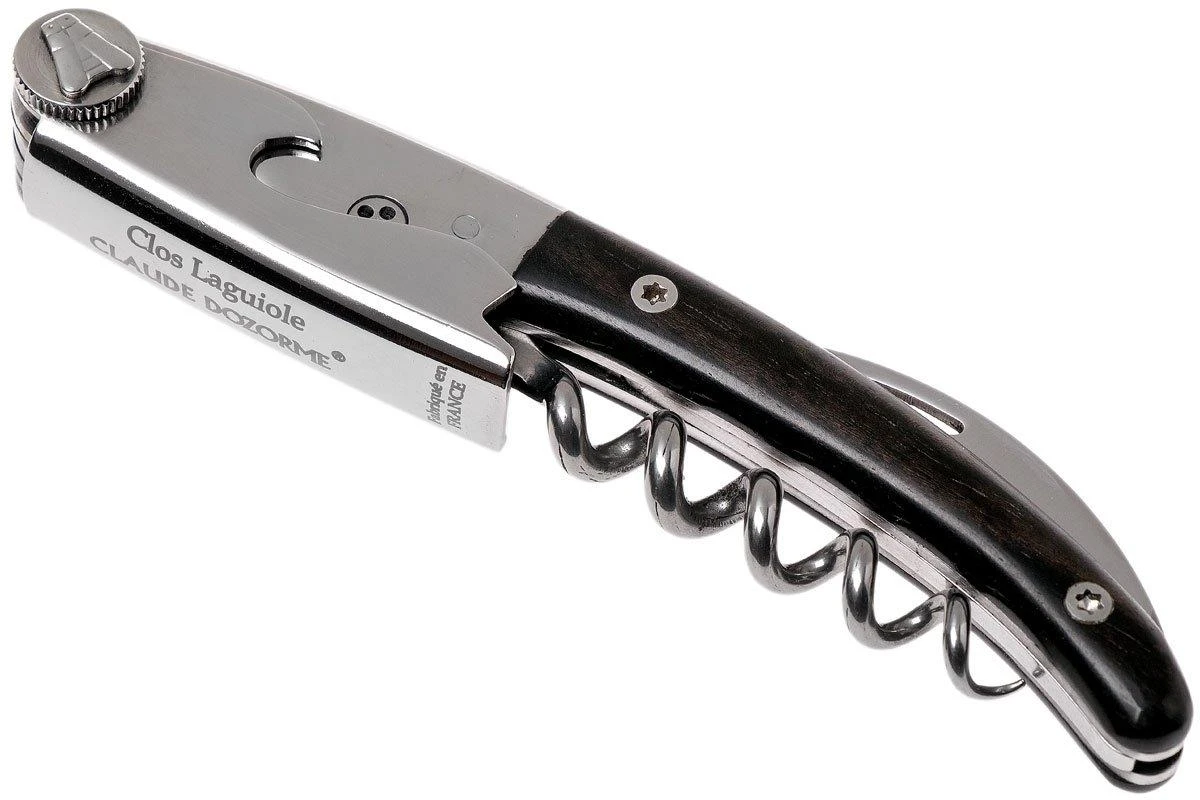 Ce couteau sommelier Claude Dozorme Clos Laguiole est un luxueux accessoire pour le vin au style Laguiole. Parachevé à la main à Thiers, selon la tradition coutellière française. L’abeille sur l’un des côtés du manche indique tout de suite qu’il s’agit d’un Laguiole. Le ressort arrière en témoigne également. Il a été limé à la main par un artisan français. Un travail extrêmement minutieux.