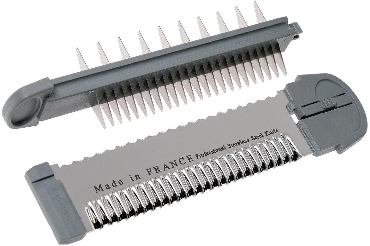 La de Buyer Swing Plus est une mandoline solide et bien conçue. Elle est livrée avec un peigne double julienne et une double lame. La plaquette de support en acier inoxydable avec alvéoles empêche les aliments de coller à la mandoline. La mandoline Swing Plus vous permet de couper vos légumes en julienne, en lanières en tranches ou en rondelles comme un chef : lisse, sûr et très pro !