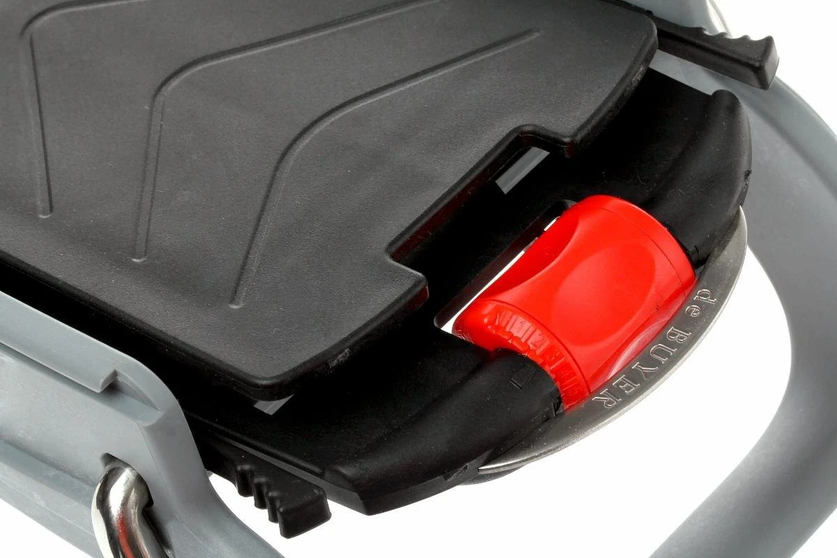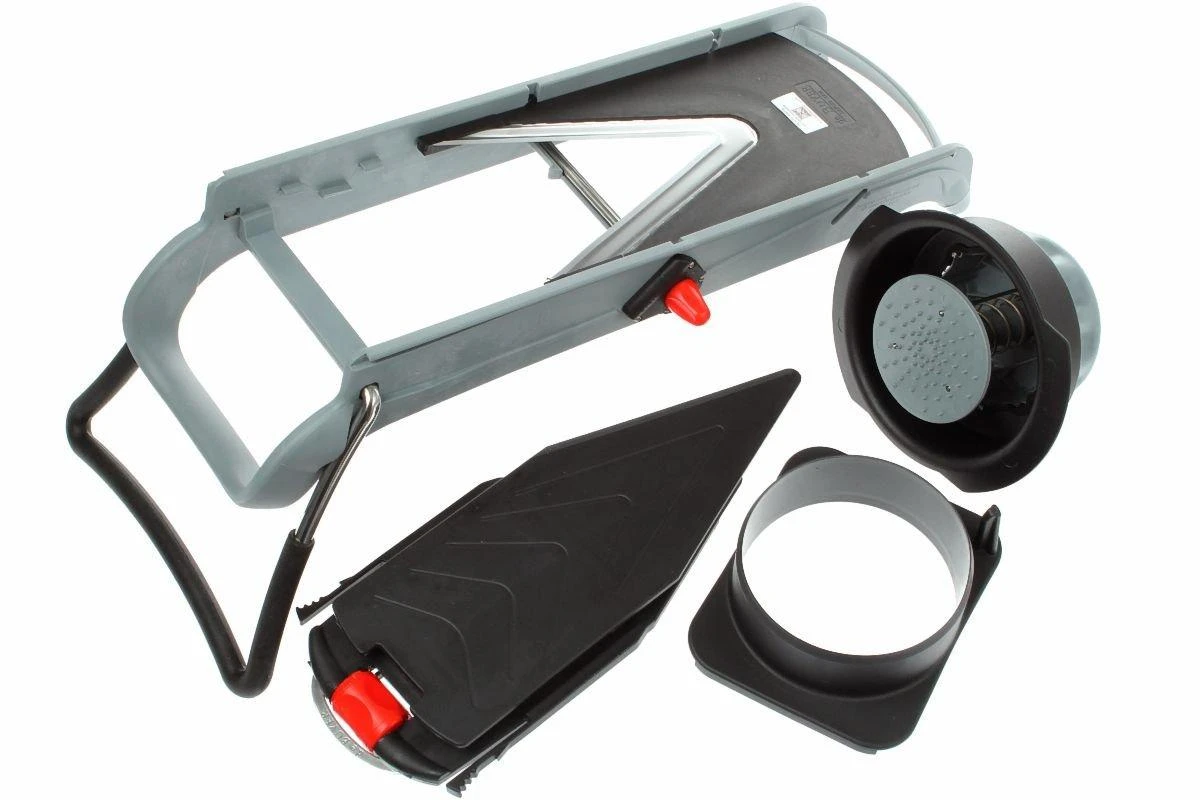 DeBuyer est un fabricant très réputé de nombreux produits qui sont utilisés en cuisine professionnelle. Ils recherchent en permanence de nouvelles techniques innovantes. La mandoline Viper n’est pas seulement esthétique mais également rapide et pratique. Vous choisissez l’outil de découpe adapté pour une découpe verticale ou en julienne de vos légumes ou de vos fruits. Ensuite, vous choisissez l’épaisseur de découpe grâce à la molette de commande orange sur la poignée. Le « poussoir » muni d’un protège-main vous permet de guider votre produit sur le rail et la découpe peut commencer.
