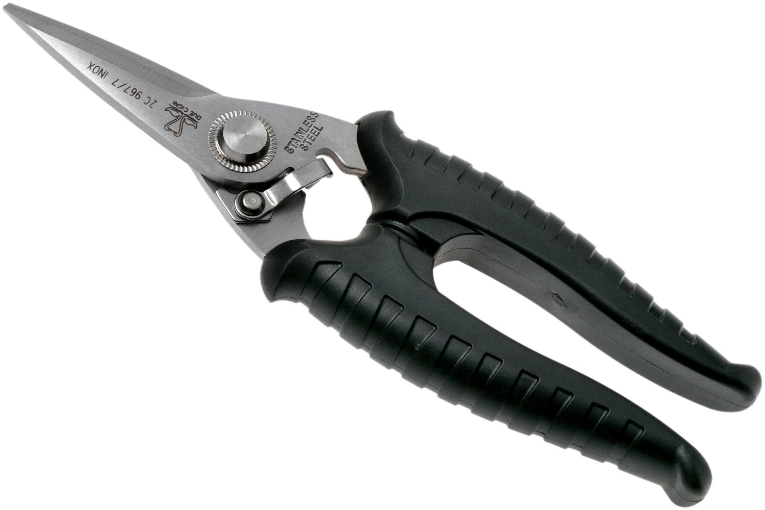 Cette paire de ciseaux de cuisine multifonction Due Cigni est dotĂ©e de microdentelures sur un des cĂŽtĂ©s. Ces ciseaux permettent donc de couper toutes sortes de tissus, mĂȘme les plus Ă©pais, comme le cuir et le denim, par exemple. Les microdentelures permettent de couper bien droit. L’extrĂ©mitĂ© pointue permet de couper du filet en nylon et en mĂ©tal jusqu’Ă 0,5 mm d’Ă©paisseur.