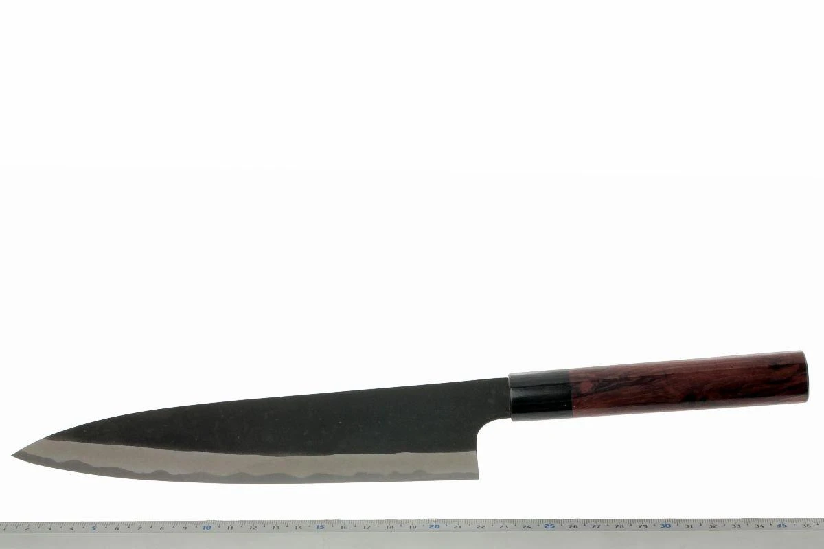 Avec ce couteau de chef Eden Kanso Aogami, on peut tout faire en cuisine. La longueur et la hauteur de la lame permettent de couper les fruits, légumes, viande et poisson en toute facilité. Mais il assure aussi pour hacher les herbes, écraser les grains de poivre et éplucher les gousses d’ail. Ce couteau de chef fait partie de la collection Kanso Aogami : une magnifique collection de couteaux de cuisine Eden. Leur objectif est simple : vous offrir une expérience de coupe extraordinaire !