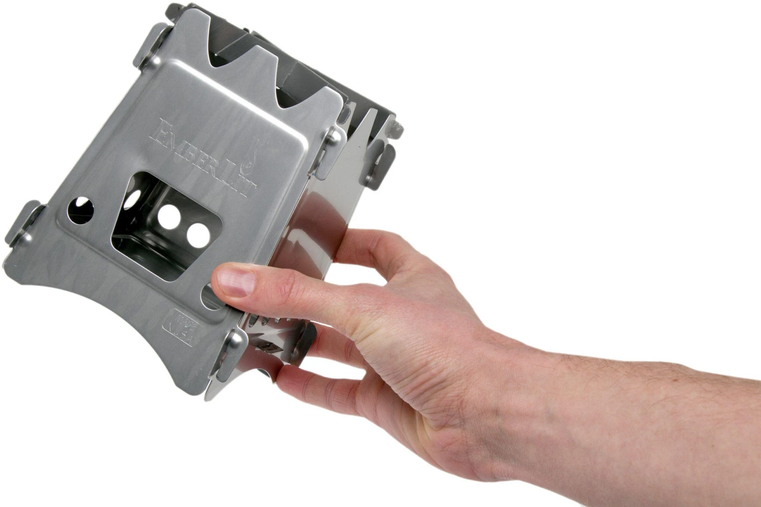 Le Emberlit Original RVS stove est un poêle à bois très compact et facile à transporter. Ce poêle est l’emblée de la marque Emberlit et place la barre très haut pour la conception de poêles à bois pliables. Son système d’alimentation unique lui permet de brûler de grandes branches. Vous n’avez donc pas besoin de casser votre bois au préalable. L’alimentation régulière en combustible assure une combustion contrôlée et constante. Vous n’avez donc plus qu’à vous concentrer sur la cuisson au lieu de remplir le poêle à bois constamment.