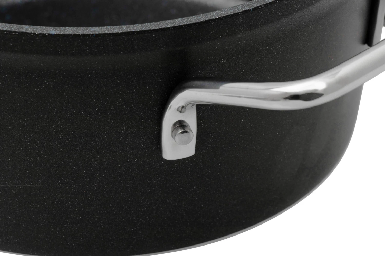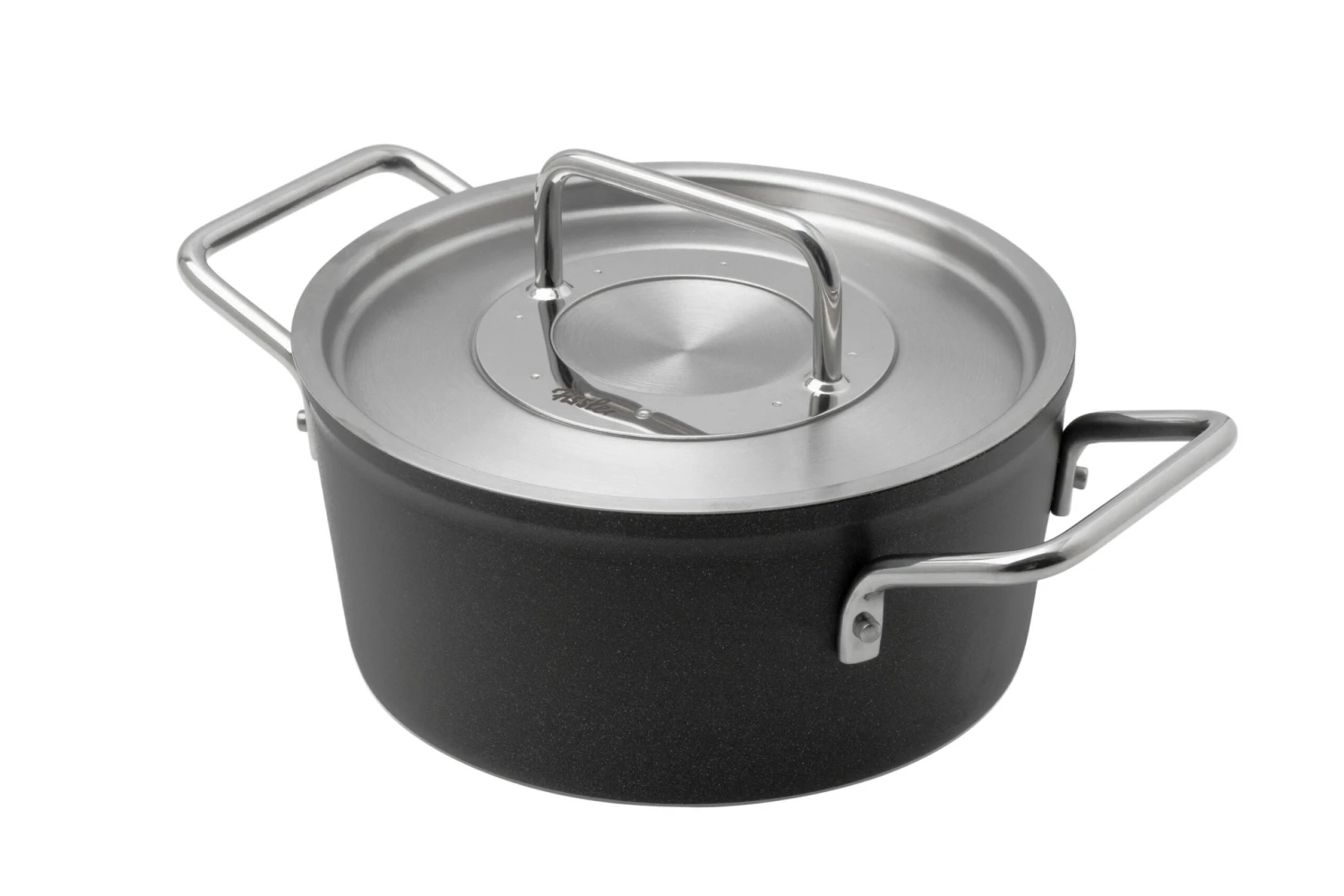 La cocotte Fissler Adamant 18 cm est une petite casserole assez spéciale. Le revêtement antiadhésif contient du carbure de silicium, ce qui le rend extrêmement robuste et résistant aux rayures. Vos spatules en silicone sont au lave-vaisselle ? Avec les poêles Fissler Adamant, vous pouvez vous servir de vos ustensiles en métal !