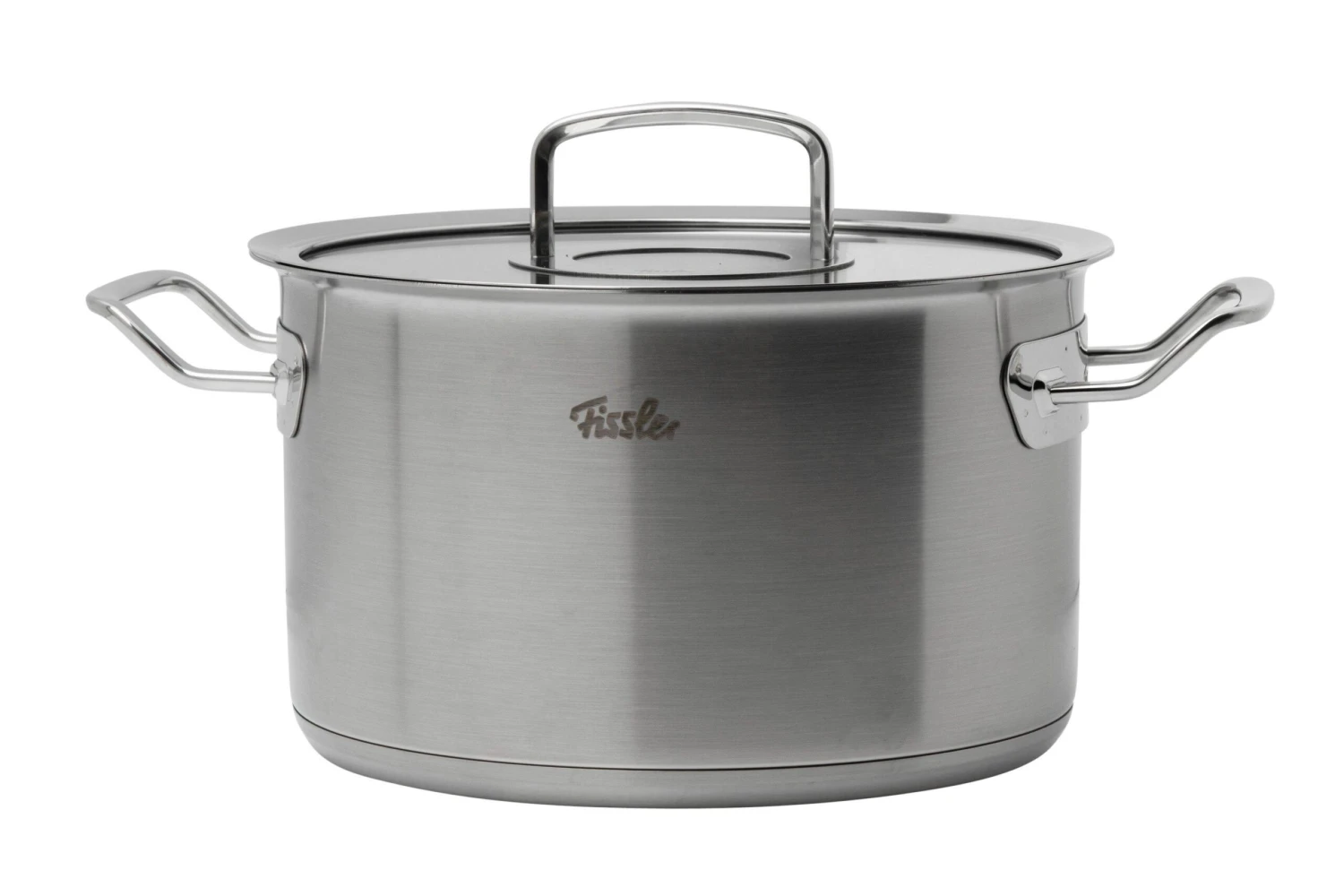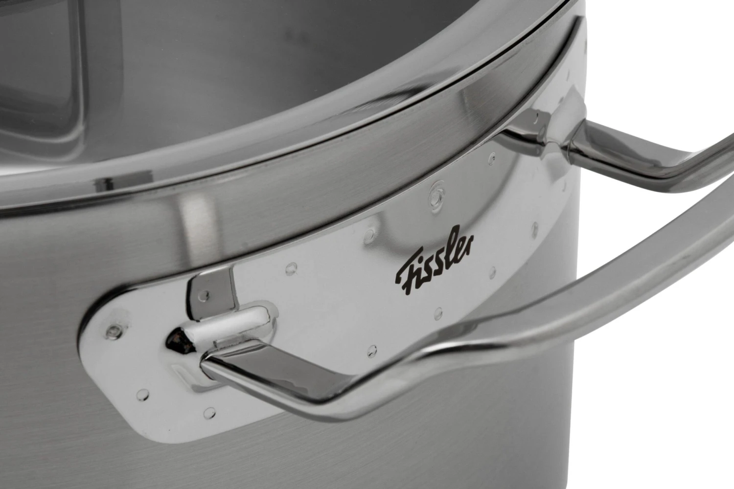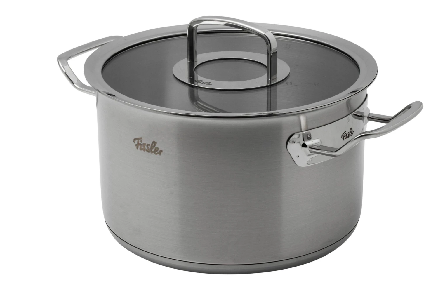 Ce faitout Fissler Original Pro Collection fait 24 centimètres de diamètre et peut contenir jusqu’à 6,3 litres. La graduation interne va jusqu’à 4 litres. Elle est livrée avec un couvercle en métal et en verre.