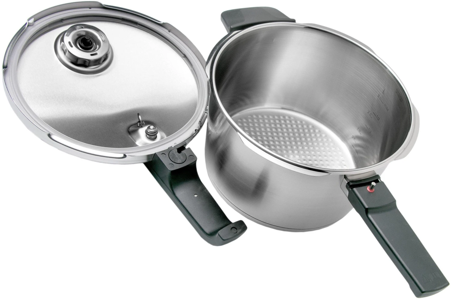 Cette cocotte Fissler Vitavit Premium de 22 centimètres peut contenir au maximum 4,5 litres. Il y a une fonction cuisson à vapeur, avec panier vapeur inclus.