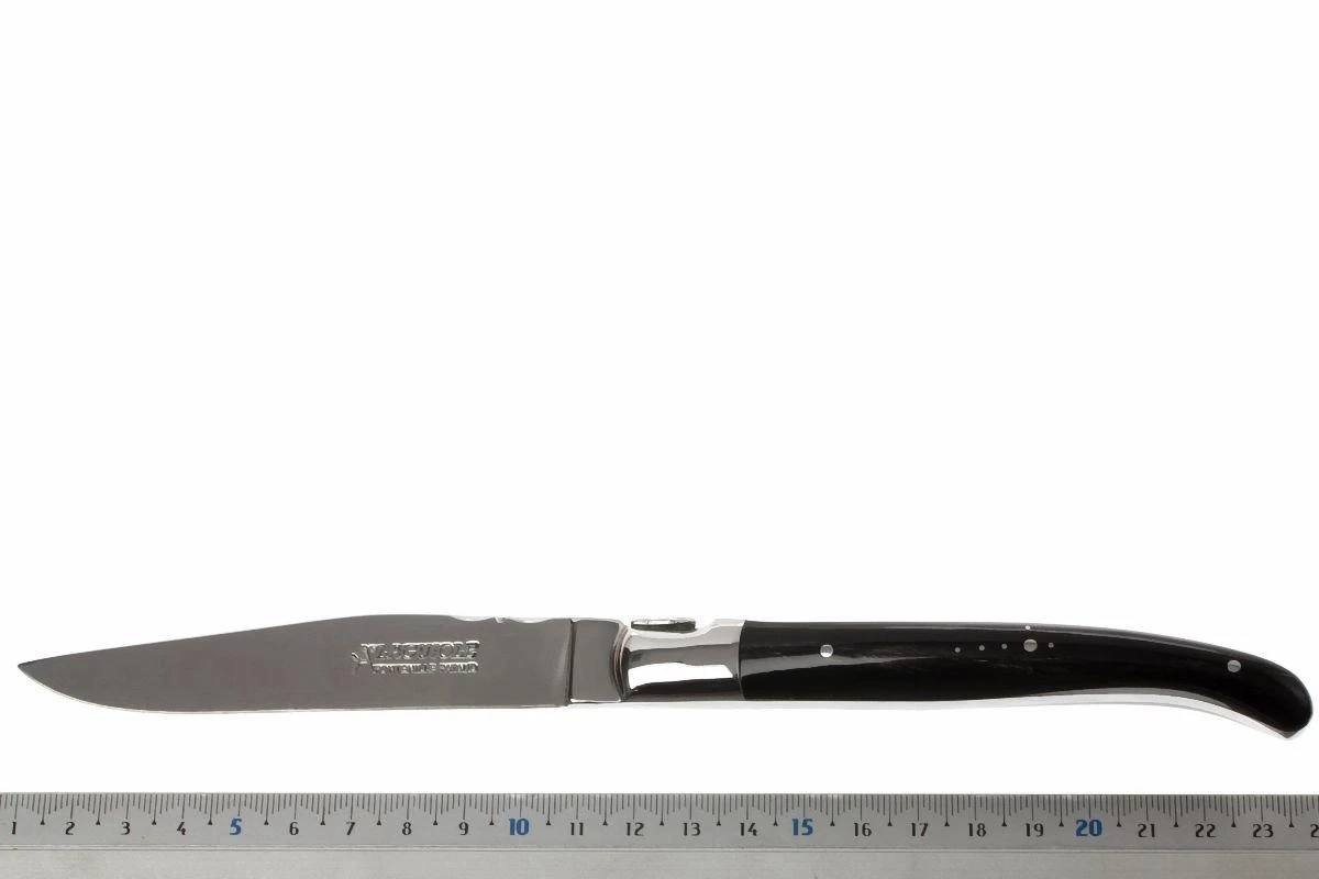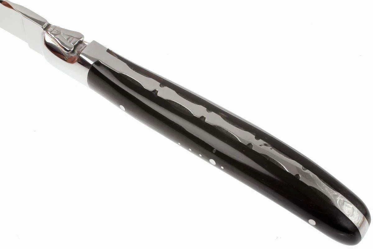 Ce set de couteaux à steak Fontenille Pataud est composé de deux couteaux de table Laguiole avec manche en corne de buffle. Un matériau rare et cher. De plus, Fontenille Pataud n’utilise que les pointes des cornes, car elles sont plus « pleines » et donc plus chères que le reste de la corne.
