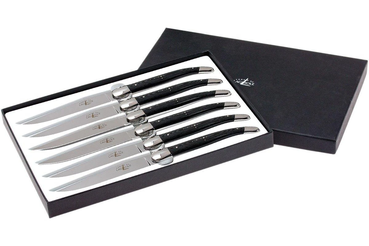 Mettez en plein les yeux de vos invités avec ce set de couteaux à steak Forge de Laguiole. Traditionnels et très chics : ces couteaux de table rayonnent de style et de finesse. Chaque couteau est fabriqué à la main depuis l’atelier Forge de Laguiole situé dans le village de Laguiole. La main de l’artisan est visible sur chaque couteau. Un artisanat pur comme on en voit très peu de nos jours.