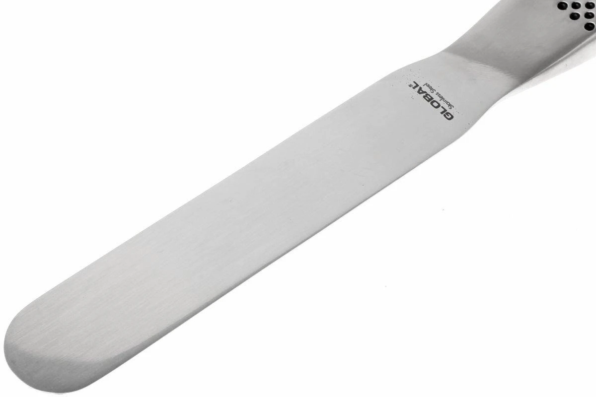 Un incontournable dans chaque cuisine : une bonne spatule. Ce couteau est idéal pour lisser les garnitures et crèmes sur les gâteaux, les démouler ou encore retourner les crêpes. Cette spatule Global fait très bien son boulot. Comme elle est très fine, elle glisse facilement le sous les aliments. Le manche alvéolé est en acier inoxydable, pour une préhension optimale lors de l’utilisation.