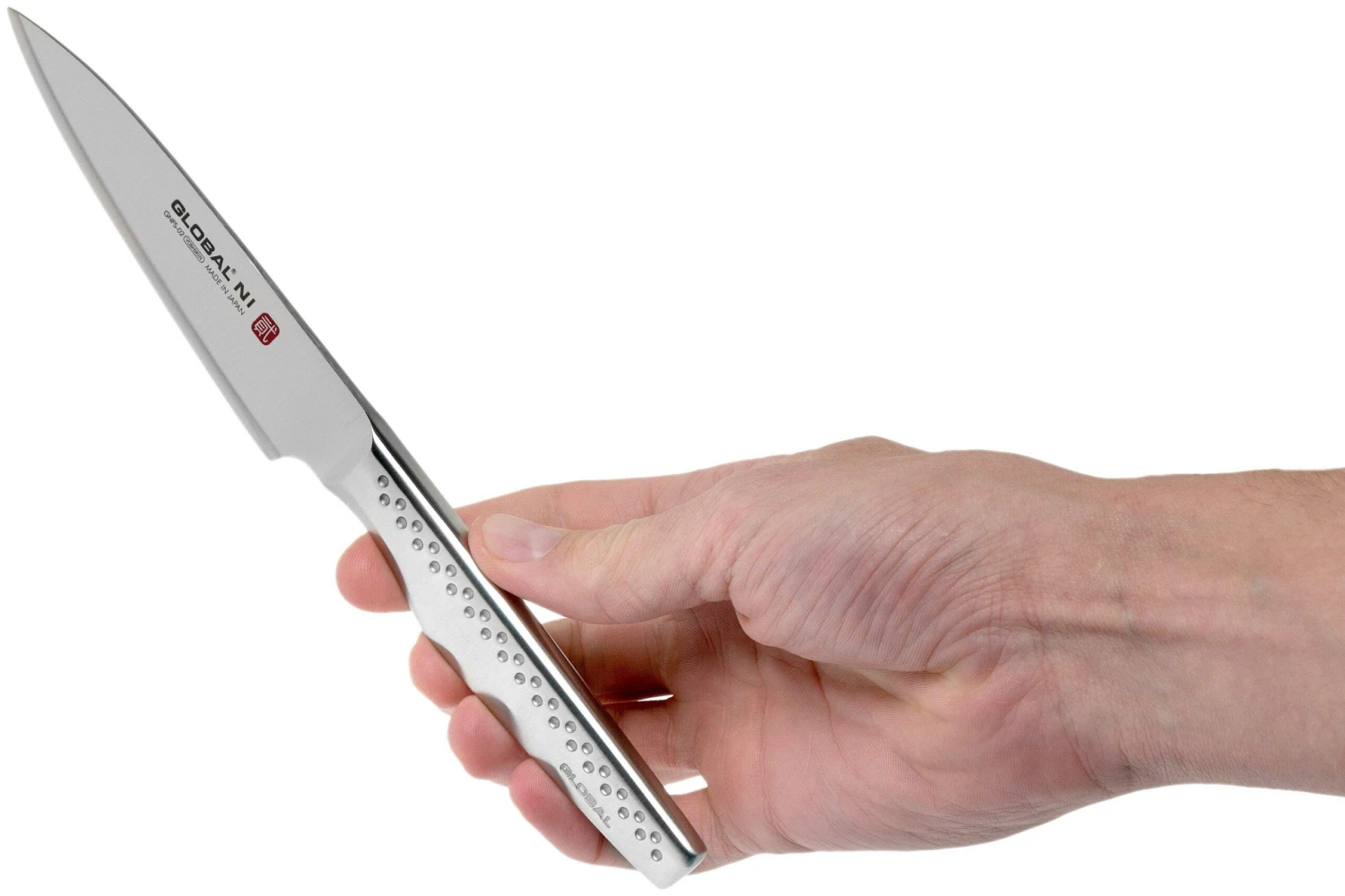 Le couteau d’office Global Ni GNFS-02 est le plus petit couteau de la gamme Global Ni. GNFS est l’abréviation de Global Ni Forged Small. Avec 11 cm de long, la lame est relativement petite mais très facile à manier. Ce couteau d’office est parfait pour éplucher les légumes et faire des petites coupes comme les oignons, les garnitures etc.
