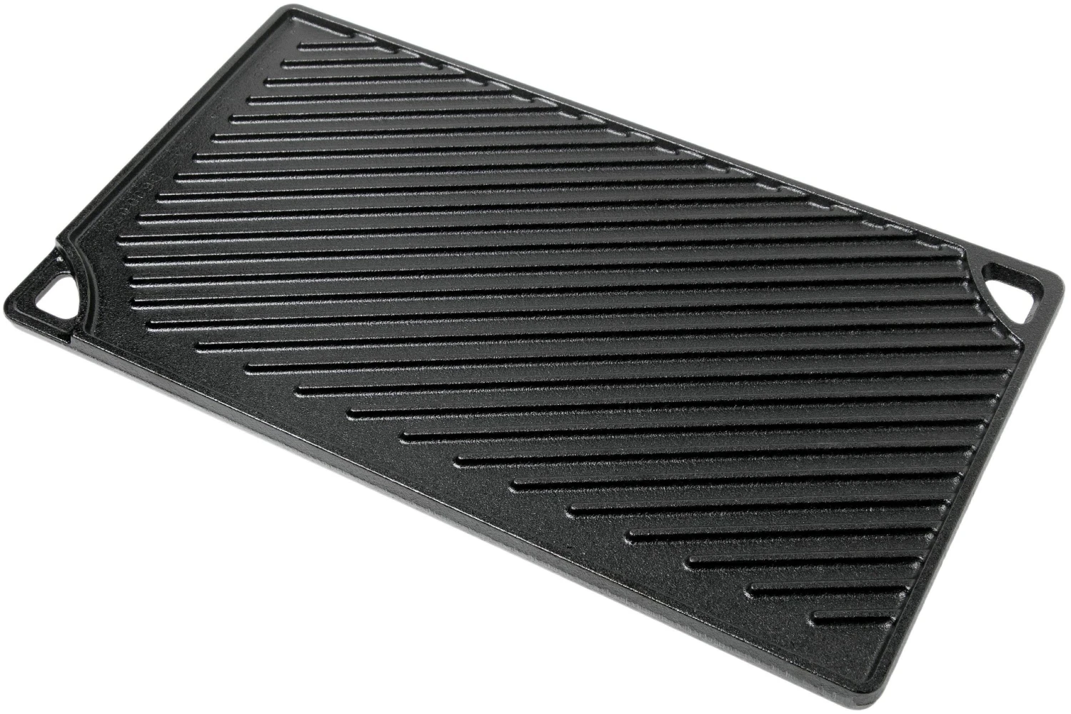 On utilise cette plaque gril/plaque de cuisson réversible Lodge Cast Iron comme une grande surface de cuisson. On la positionne sur deux brûleurs de la cuisinière. Attention de régler les deux brûleurs sur la même chaleur pour une meilleure répartition de la chaleur lors de la cuisson. On peut également utiliser cette plaque au four, sur le gril ou au-dessus d’un feu de camp.
