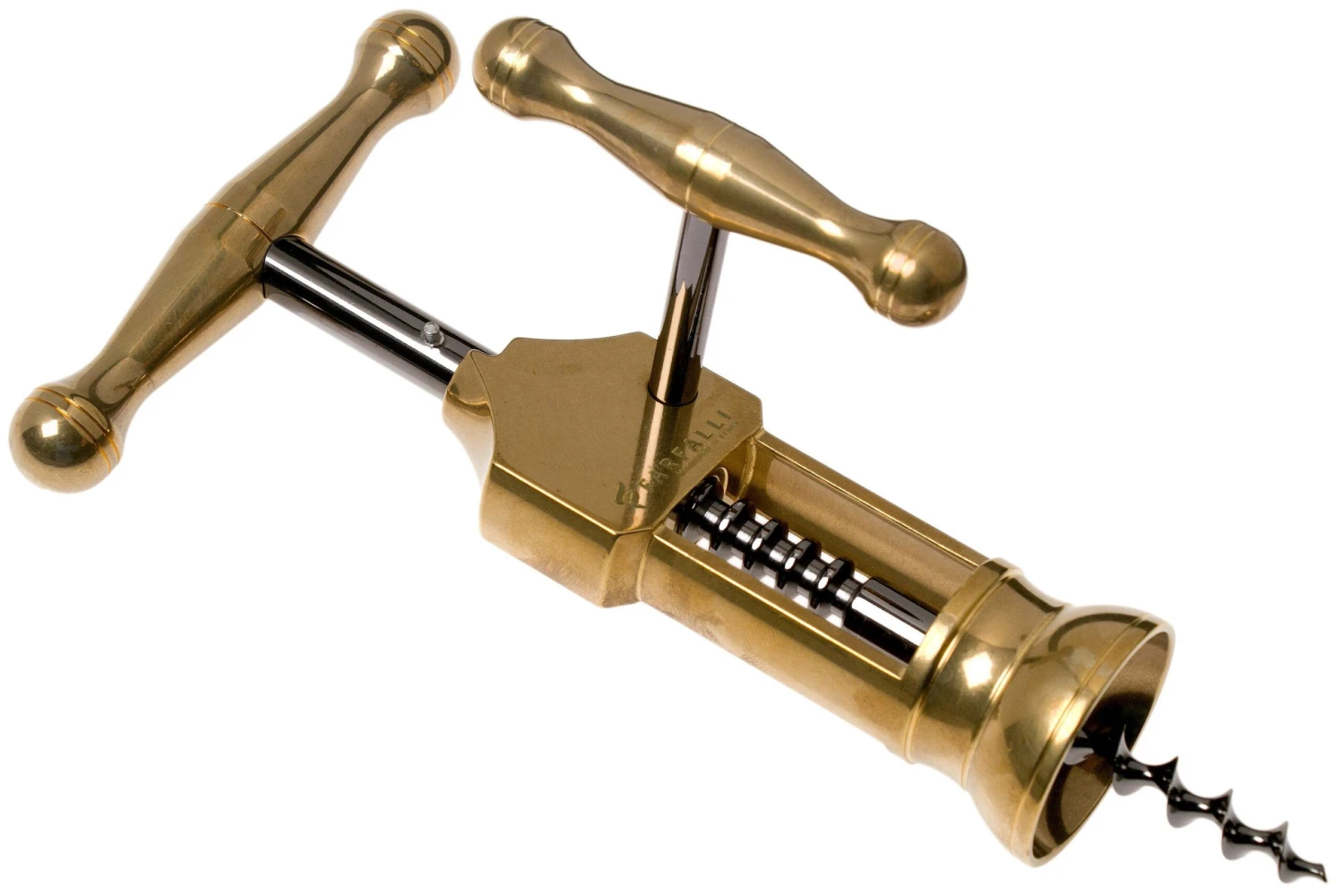 On voit tout de suite que ce tire-bouchon Maserin King est un accessoire de haute qualité. Ce tire-bouchon tout en métal est assez lourd et bien solide. Son design est en plus très élégant, et le tire-bouchon King est livré dans un emballage cadeau luxueux. Il est fait en laiton. Ce modèle est une réplique du tire-bouchon du 19ᵉ siècle : le London Rack.