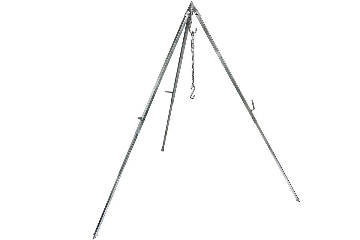 Le trépied Petromax vous permet de cuisiner sur un feu ouvert d’une toute autre façon. Suspendez un Dutch Oven (non inclus) ou une grille de barbecue (non inclus) à la chaîne au-dessus du feu. La longueur de la chaîne est variable afin que vous puissiez ajuster la distance entre le Dutch Oven et le feu à tout moment. Chaque pied est réglable en hauteur pour assurer sécurité et stabilité sur toutes les surfaces. Cet ensemble contient le trépied et la chaine de suspension.