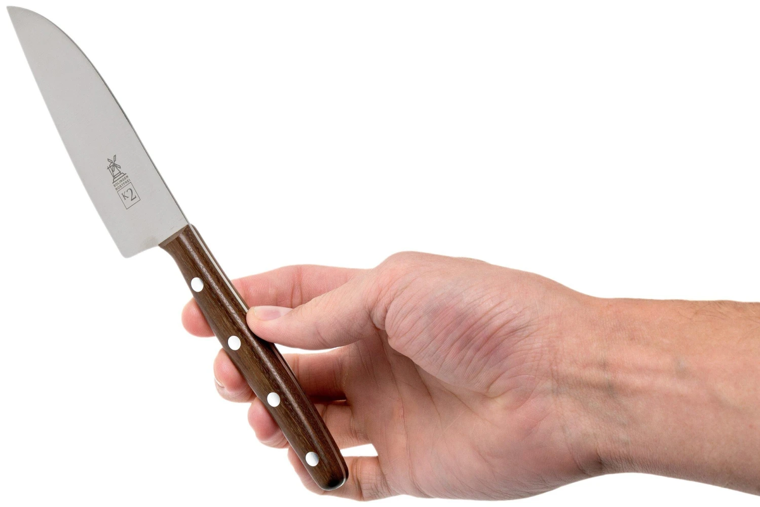Le petit couteau de chef Robert Herder K5 a une lame de seulement 11,5 cm. Pour ne pas perdre de surface de coupe, la lame est aiguisée sur toute la longueur. On utilise un couteau de chef pour couper les légumes, la viande, le poisson et les fruits. Mais aussi pour hacher les herbes, écraser les grains de poivre et éplucher les gousses d’ail. Le couteau de chef est vraiment polyvalent.