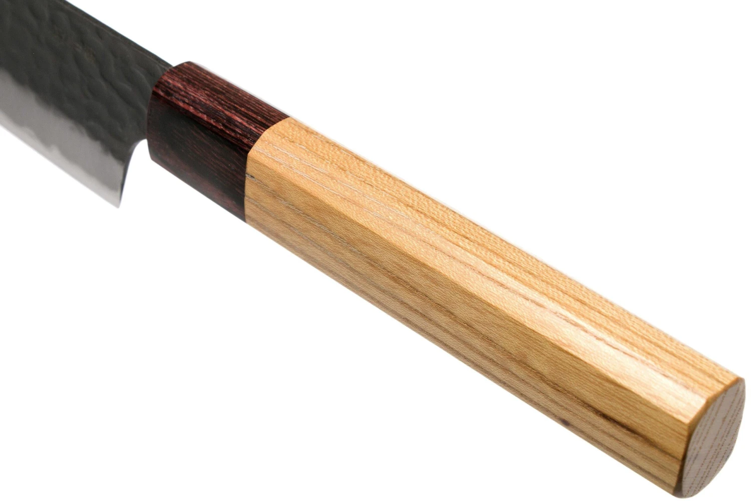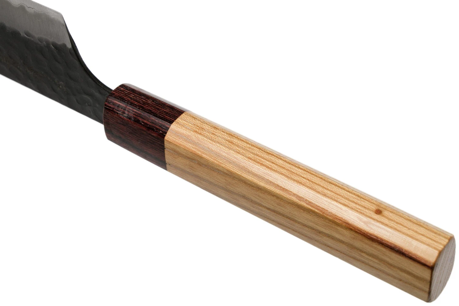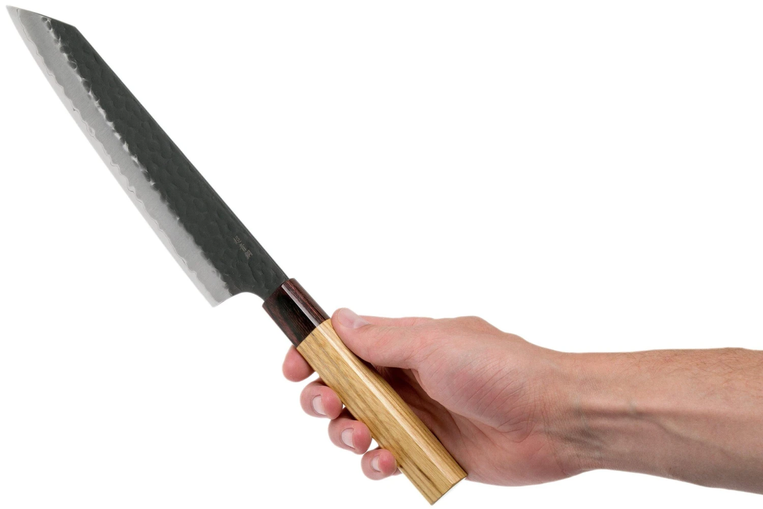 Ce couteau Kengata de la gamme Sakai Takayuki Blue Super a une lame kengata. Ce mot signifie »lourdement réfléchi » et fait référence à la forme de la lame qui s’incline brusquement à son extrémité. Le couteau peut aussi être considéré comme un membre de la famille des santoku. Grâce à sa pointe étroite, vous pouvez couper la viande, le poisson et les légumes très finement.