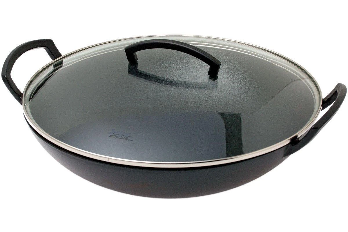 Ce wok avec couvercle Spring de 35 cm associe confort et qualité. Ce wok est en fonte massive. La fonte est connue pour son excellente répartition de la chaleur et ce de manière progressive et uniforme. Une fois que votre wok est chaud, vous pouvez réduire la source de chaleur. Grâce à ces propriétés, c’est un régal de cuisiner avec des casseroles en fonte. Vous pouvez cuisiner avec le wok bien sûr mais aussi rôtir, braiser ou préparer de délicieuses sauces. Grâce à son fond plat, ce wok en fonte convient à toutes les sources de chaleur, y compris l’induction. Un véritable atout pour votre cuisine !