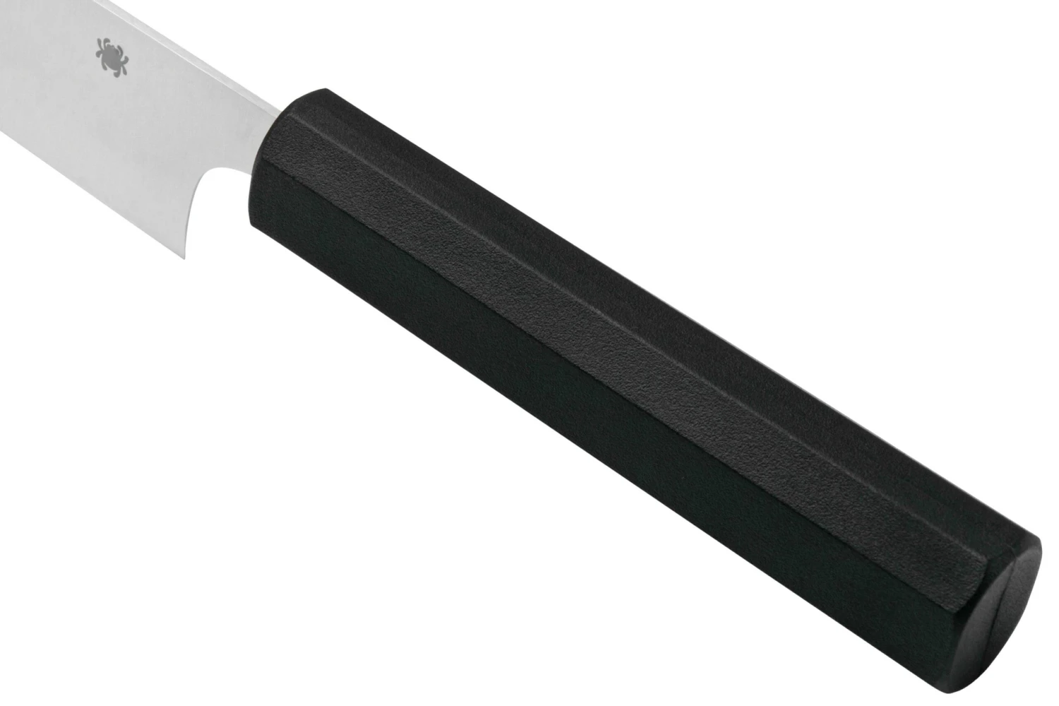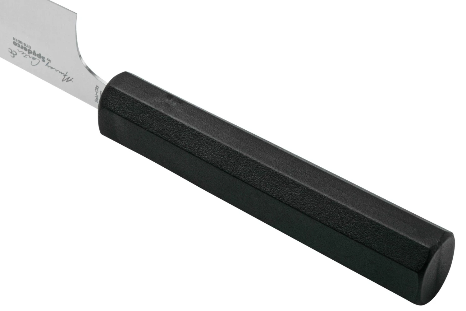 Ce couteau Spyderco Minarai Funayuki de la collection Murray Carter est extrêmement populaire auprès des pêcheurs. Et ce n’est pas pour rien ! Il permet de couper le poisson très finement, et aussi la viande et les légumes.