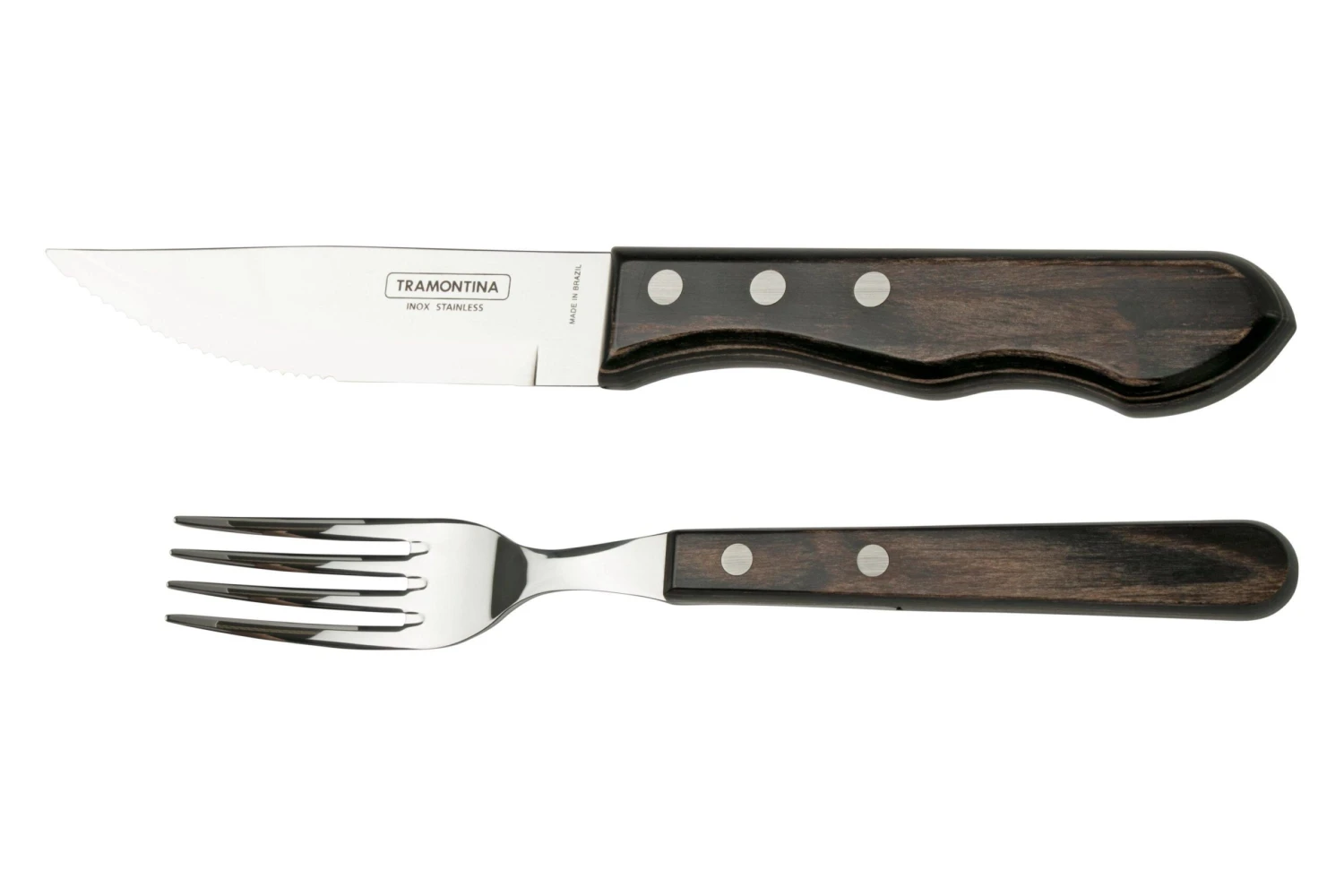 Ce set de 2 couverts à steak Tramontina Churrasco Jumbo est un set pratique et abordable composé d’un gros couteau à steak et d’une fourchette assortie. On peut s’en servir au restaurant, chez soi ou lors d’un délicieux barbecue !